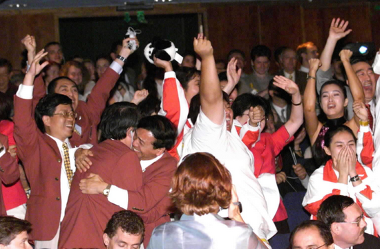 图为2001年7月13日,2008年奥运会举办城市投票揭晓,北京赢啦!这是在天安门广场庆祝胜利的人群展开一面巨型五星红旗。新华社记者李勇摄图为2001年7月13日,2008年奥运会举办城市投票揭晓,北京赢啦!这是在天安门广场庆祝胜利的人群展开一面巨型五星红旗。2001年7月13日,在莫斯科举行的国际奥委会第112次全会上,北京市获得2008年奥运会举办权后,欢庆的北京申奥成员们。新华社记者李学仁摄2001年7月13日,在莫斯科举行的国际奥委会第112次全会上,北京市获得2008年奥运会举办权后,欢庆的北京申奥成员们。